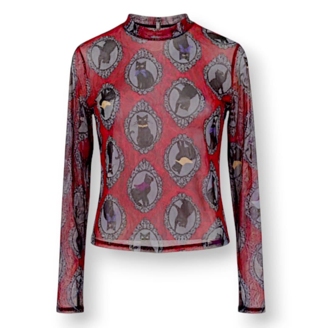Blusa Mesh Gatos Roja