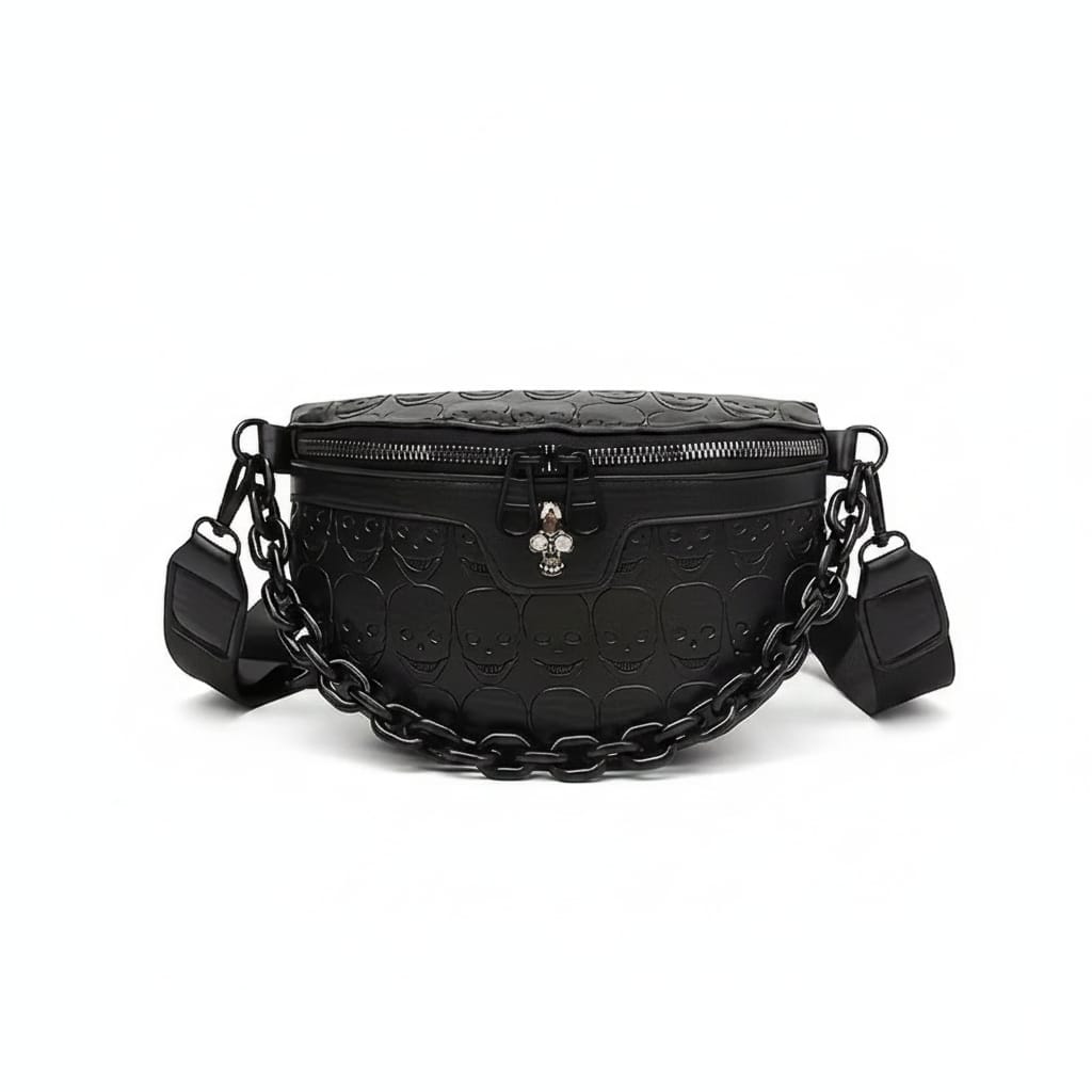 Cangurera Negra Calavera con Cadena