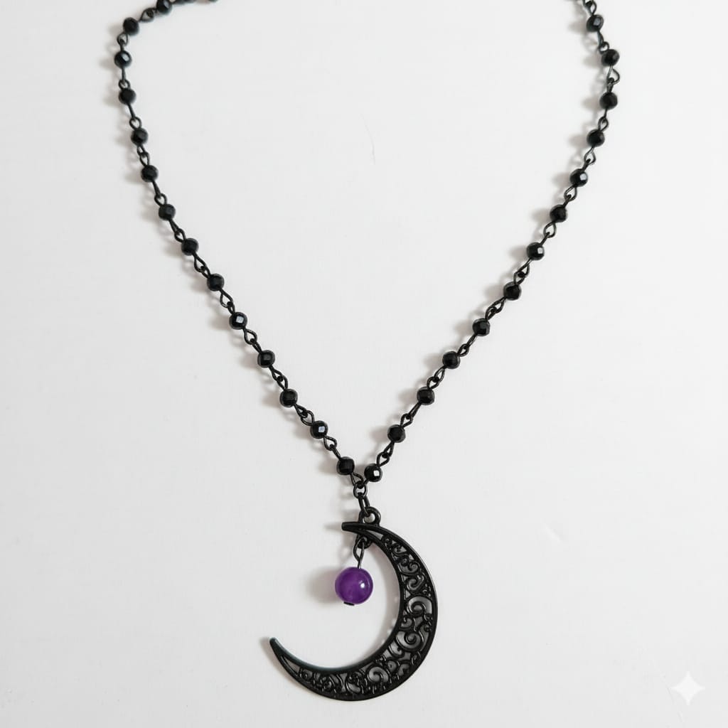 Collar luna negra piedrita morada