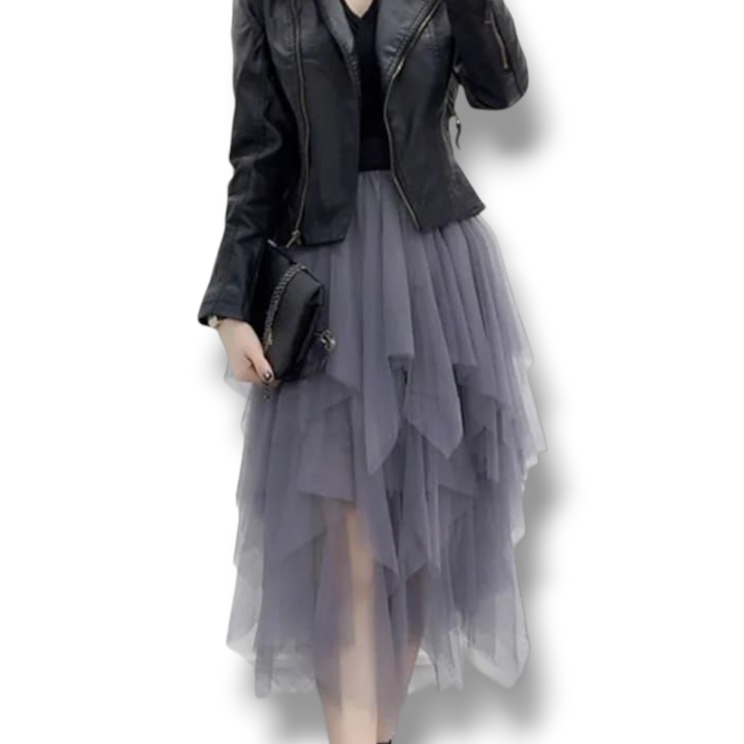 Falda Tul Asimétrica Gris