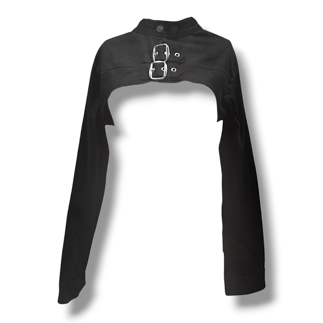Rompe lo convencional con las Mangas con Hebillas, un bolero corto que desafía cualquier expectativa. Sus correas con hebillas en el pecho son más que un detalle: son un símbolo de poder y control sobre tu propia estética. Perfecto para noches donde quieres sentirte imponente, con un toque de oscuridad elegante.